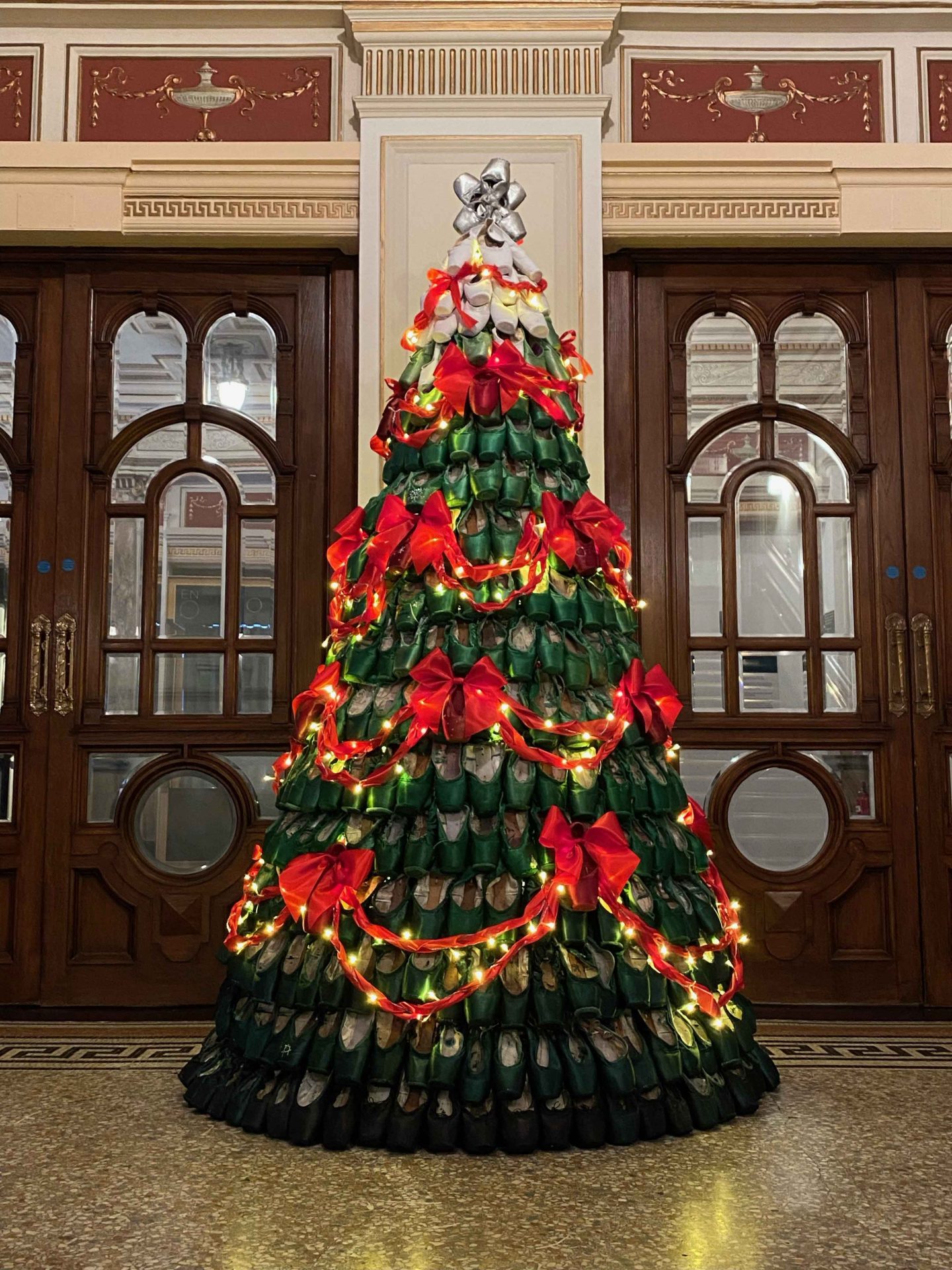 English National Ballet’s annual pointe shoe tree at the London Coliseum is an example of our used pointe shoes getting a new life.